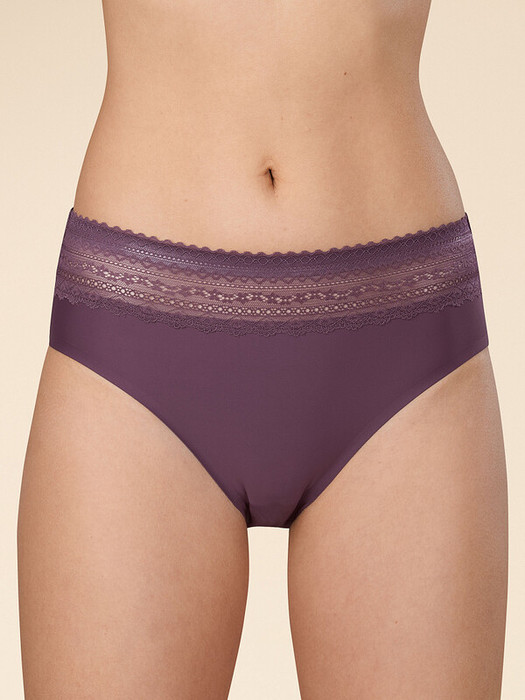 Женские трусы-слипы с высокой посадкой. Изготовлены по бесшовной технологии с минимум швов. Кромки по ноге и по талии подогнуты и приклеены, хлопковая приклеенная ластовица.  Нежное геометричное кружево по линии талии высотой 5 см – не передавливает тело и не натирает кожу.  Модель оценят те, кто ищет незаметное и невесомое белье на каждый день или особого случая.