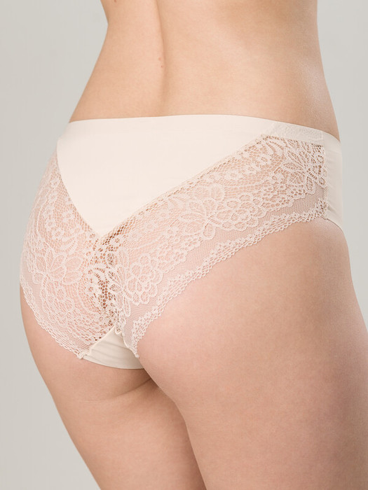 Женские трусы-слипы с высокой посадкой. Изготовлены по бесшовной технологии с минимум швов. Кромки по ноге и по талии подогнуты и приклеены, хлопковая приклеенная ластовица.  Нежное цветочное кружево придает модели утонченный вид. Продуманный крой трусов создает изящный силуэт. Модель оценят те, кто ищет незаметное и невесомое белье на каждый день или особого случая.