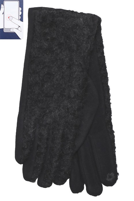 Подклад: Без подклада Тип изделия: Перчатки Состав: Трикотаж Место: П7-1-К1Перчатки одинарные, сенсорные (нашивка на кончике указательного пальца) из мягкого трикотажного сукна (кашемир) и вставка из фактурного трикотажа.