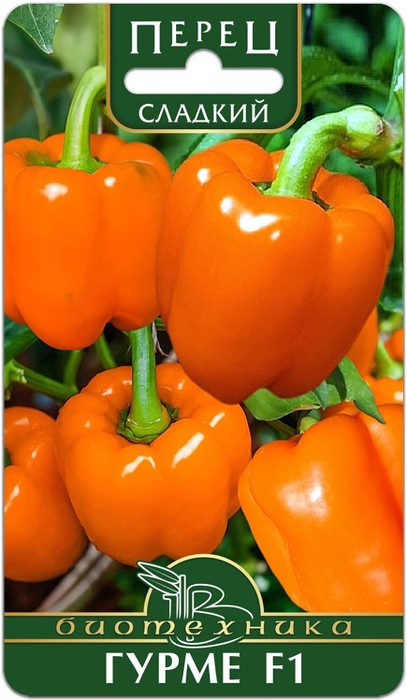 Гибрид раннеспелый - техническая спелость наступает на 95-100 день, биологическая - на 120-140 день от всходов.; Куст среднерослый, высотой 51-52 см, среднеоблиственный. Лист зеленый, яйцевидно-удлиненной формы. Плоды удлиненно-кубовидной формы, крупные, весом 160-200 г, поникающие. Окраска плода в технической спелости темно-зеленая, в биологической апельсиново-оранжевая. Толщина стенки 6-8 мм, гнезд 3-4. Аромат средний, мякоть нежная. Обладает отличными вкусовыми качествами, хорошей транспортабельностью.; Высадку рассады проводят в фазу бутонизации - начале цветения 50-60 дневной рассадой - для теплиц, 45 дневной рассадой - для парников и открытого грунта. Густота посадки 3-5 растений на м2, для обогреваемых теплиц и 5-8 растений на м2, для необогреваемых теплиц.