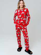 Пижама молодежная состоит из футболки и бриджей. Футболка асимметричного кроя с принтом, одним боковым карманом, рукав втачной, обработан планкой. Бриджи прилегающие с карманами, пояс на резинке.
