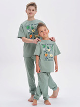Пижама детская из мягкого и теплого трикотажа — футера с начесом. Подходит для сна и просто для отдыха дома. Кофточка с длинным рукавом имеет круглый вырез, горловина обработана эластичной тесьмой из рибаны. Вшитая планка украшена цветными кнопками. Низ рукава и низ брюк имеет манжет, созданный из основного полотна. В этой пижаме комфортно и уютно