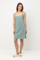 Пижама женская, состотящая из майки и шорт. Майка - из полотна ""кулирка"" в клетку, расширенная книзу, с окантованными горловиной и проймами. Шорты - из полотна ""кулирка"" в клетку, расклешеные, короткие, с эластичной тесьмой по талии. Примечание: Цвет окантовки пройм и горловины вариативен - из основного материала или однотонного серого.
