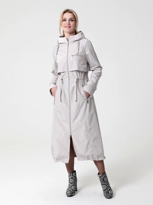 Длинный весенний плащ А-образного силуэта с рукавами покроя реглан и отлетными кокетками по спинке и полочке подойдет для женщин и девушек любого возраста. Застежка на двухзамковую молнию позволяет расстегнуть изделие как сверху, так и снизу, регулируя тем самым ширину шага при ходьбе и подъеме. Воротник - стойка, переходящая в регулируемый капюшон. Внешние карманы застегиваются на молнию. Есть внутренний кармашек, тоже на молнии. Прилегание по талии обеспечивается с помощью эластичной ленты и кулиски. Ширину по низу изделия можно регулировать затяжкой, тем самым меняя силуэт. Плащевая ткань имеет водоотталкивающую пропитку, которая выдержит небольшой дождь и легкий ветер. Плащ выполнен в модных цветах, выбирайте понравившийся, фантазируйте с обувью и аксессуарами, и Ваша весна будет не только комфортной, но и стильной!