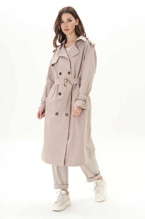 Свободный у прямлённый силуэт со слегка заниженной линией плеча, рубашечный покрой рукава, двубортной застёжкой. На полочке прорезные карманы с листочкой.