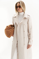В качестве фурнитуры выбраны стильные пуговицы. Плащ на отлетной по линии низа подкладке.