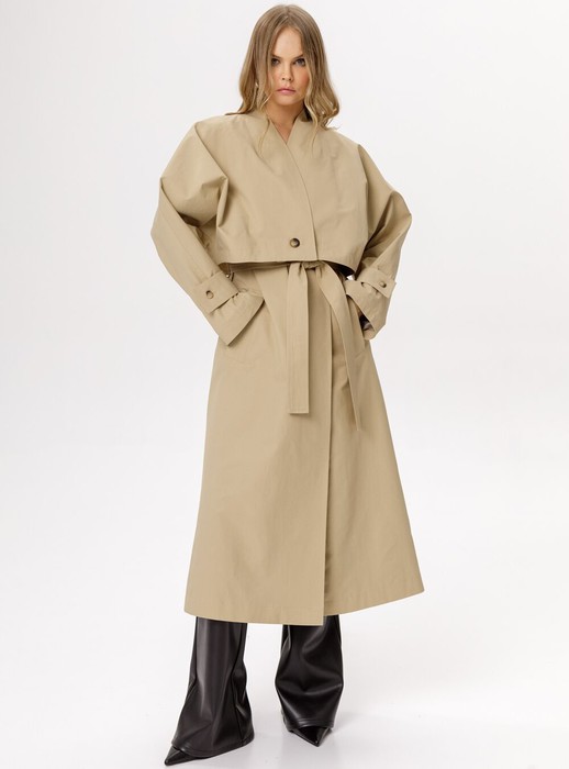 Свободный универсальный тренч-трансформер состоящий из жилета и верхней укороченной куртки.