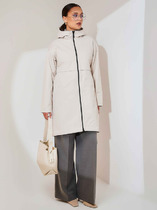Плащ женский прямого силуэта, выполнен из качественной голландской плащевой ткани. Рукав длинный, "реглан". Плащ со стойкой и капюшоном. Изделие с центральной застёжкой на тесьму-молнию. Молния закрыта планкой, которая застёгивается на пробивные декоративные кнопки. По переду и спинке плаща - отлетная кокетка. По спинке кокетки заложена встречная складка, которая застёгивается патой на пробивную кнопку. В нижней части переда обработаны прорезные карманы с листочками. Капюшон и талия регулируется двойными резинками и фиксаторами. В нижней центральной части спинки обработана шлица.