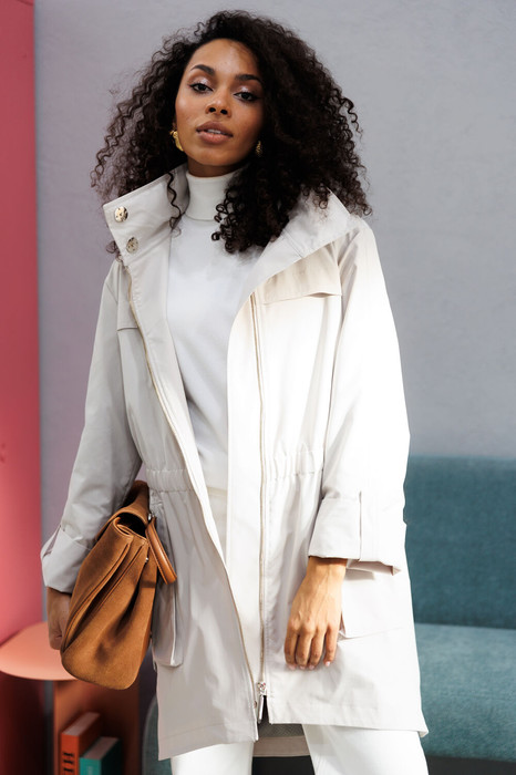 Эта легкая куртка – идеальный баланс между стилем и комфортом. Выполненная в универсальном светлом оттенке, она придает образу свежесть и элегантность, а свободный силуэт с утяжкой на талии подчеркивает фигуру, создавая женственный силуэт. Эта куртка станет стильной основой для любого весенне-осеннего гардероба!