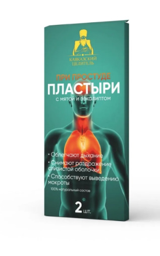 Пластырь при простуде с мятой и эвкалиптом коробка 2 шт, «Кавказский целитель»