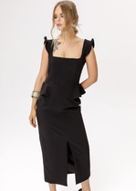 Комбинированное платье.Лиф из купонного трикотажного полотна и застежкой молния по спинке,юбка летящая расклешенная из костюмной ткани.В комплекте длинный пояс.