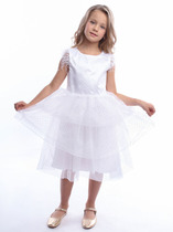 Яркое платье из мягкого тюля на подкладке, расшитое пайетками на лифе спереди. Приталенный силуэт с каскадной юбкой. Модель без рукавов, с круглым вырезом горловины. Застежка-молния на спинке. Идеальный комплект составит Жакет.На ребенке представлен размер 140:- Ширина изделия по линии груди 35 см- Ширина изделия по линии талии 32 см- Ширина по низу изделия 106 см- Длина изделия 95 смРазница между размерами составляет 1,5 см.