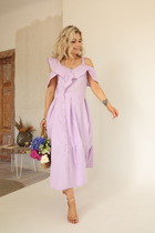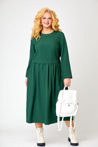 Платье силуэта трапеция. Перед с нагрудными выточками и с V- образным разрезом верху %%по горловине. Рукава втачные, одношовные, короткие. Горловина круглой формы обработана окантовочным швом.