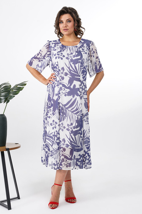 Платье полуприлегающего верху силуэта книзу годе, с застёжкой по среднему шву спинки на потайную молнию. Перед и спинка с рельефными швами. Рукава втачные, одношовные, короткие книзу расширенные, по окату со сборкой.