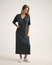 Платье женское полуприлегающего силуэта вверху с расширением книзу, отрезное по линии талии, в дополнении ремень. С застёжкой по притачной планке на петли, пуговицы. С короткими рукавами «крылышко» собраны на сборку. Воротник стояче-отложной на отрезной стойке, застёгивающейся на петлю, пуговицу.