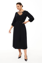 Тёплое женское платье свободного покроя может украсить гардероб многих женщин. Круглый вырез горловины, обработанной бейкой, по центру переда защип на 0,5см и прорезные карманы с листочкой. Спинка платья со средним швом. Декоративное украшение прилагается.
