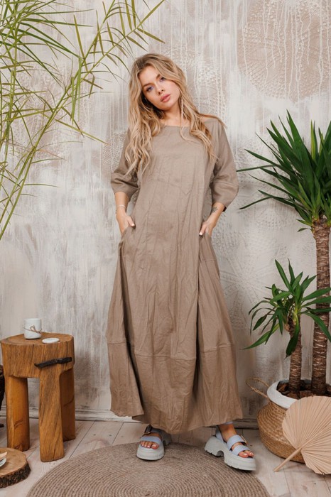 Волшебное длинное  льняное платье "АМУЛЕТ" с очень интересной формой юбки и рукавов  ввиде тюльпанчиков. Плюс удобные стильные большие карманы. Наши платья дают невероятное чувство комфорта, защищенности и красоты. Все изделия коллекции "АМУЛЕТ" имеют натуральную ткань, сложную обработку всех внутренних швов и  энергосберегающий крой. В подарок идет шопер с логотипом бренда.