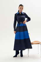 Офисное платье прямого силуэта . По переду платья круглый воротник .ниже складки и планка с декоративными пуговицами.  Втачой рукав с манжетой и также декоративными пуговицами. По спинке тесьма молния.