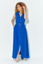 Платье полуприлегающего силуэта из мягкого уютного трикотажа длинной чуть ниже колена. По полочке в области бёдер настрочены накладные карманы с отделкой из кожи. По горловине обработан воротник-хомут. Рукав длинный цельнокроеный, по низу притачная манжета. Платье дополнено съемным поясом из кожи фиксирующимся на пряжку протяжку.