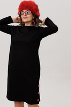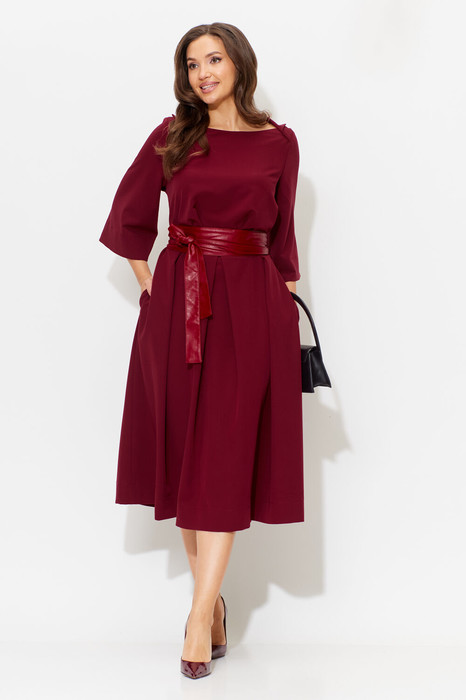 Шикарное женское платье идеально на любую погоду: под босоноржки либо под сапоги и пальто. Отличный вариант универсального изделия: подойдет как для повседневного и офисного гардероба, так и для праздничного выхода. Отрезное по линии талии. По полочке объем груди создается за счет направленных складок из подреза. Объем юбки создается за счет центральной встречной и 2-х односторонних складок. По бокам в юбке- карманы. Рукав втачной, 3/4 длинны с отворотом. Вырез горловины лодочка с отложным воротником. В комплекте съемный пояс. Длина спинки до подреза -45 см., длина юбки -77см. Длина рукава-44 см.