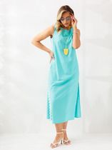 Свободное легкое  женское платье из текстильной ткани. Идеальный вариант в жаркую погоду для офиса, прогулки или праздничного выхода. Достаточно обыграть его подходящими аксессуарами и обувью. Платье прямого силуэта , с отрезным косым валаном,со сборкой. Обьем  по груди создается за счет выточек из проймы. Платье подойдет на любую фигуру, сроет все недостатки. По переду идет накладной карман с нашивкой ВНИМВНИЕ! Нашивка может отличаться от фото. Длина платья :(50-54)-118 см., (56-60)-122см. Длина рукава:(50-54)-27см.,(56-60)-28см.