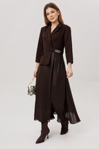Платье длиной макси, с полуприлегающим лифом и юбкой А-образной формы, выполнено из однотонной ткани костюмно-плательной группы .