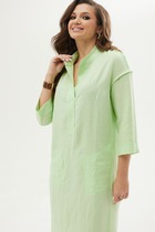 Платье женское прямого силуэта, выполнено из костюмной поливискозы. Перед с нагрудными вытачками, с карманами в швах, спинка со швом посередине. Горловина округлой формы, рукава втачные одношовные, длиной 3/4. Изделие на подкладке.