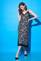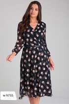 Платье длины миди, полуприлегающего силуэта, отрезное по линии талии.