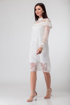 Это изысканное и нарядное платье воплощает в себе элегантность и стиль, создавая неповторимый образ для любого случая. Рукав с фигурным низом и кокетливой перемычкой придает образу легкость и изысканность. Силуэт трапеция обеспечивая комфорт и свободу движений.