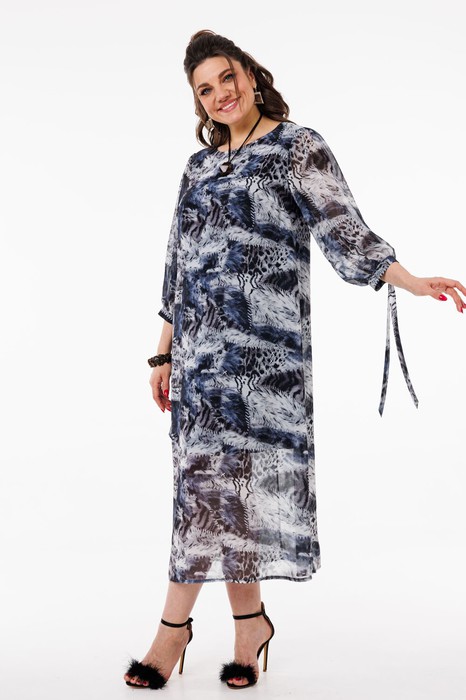 Нежный шифон с оригинальным и запоминающимся принтом создаёт ощущение легкости и воздушности, что делает его незаменимым для особых случаев. Завязки на рукавах добавляют особого шарма, подчеркивая индивидуальность, а изящные разрезы вдоль юбки — смелости и элегантности вашему образу.