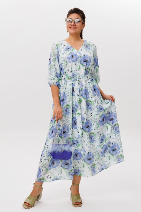 Воздушное и невесомое, словно летнее утро, это платье от Анелли очаровывает своей мягкой женственностью. Свободный силуэт-трапеция струится вдоль фигуры, даря комфорт и легкость каждому движению. V-образный вырез горловины подчеркивает изящество линий, а втачные рукава три четверти с нежной резинкой по низу добавляют образу утонченную аккуратность.