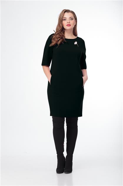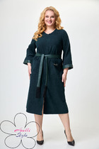 Платье прямого силуэта, по переду центральный шов, рельефы, переходящие в бочок, в рельефах рабочие карманы ;вырез горловины круглый. Пройма с притачной фигурной деталью. Спинка со средним швом и талевыми вытачками. Модель с подчёркивающим фигуру кроем.Вышивка по низу платья. Рукав реглан. 52р. ОГ-108,ОТ-108, ОБ-116, ДИ-90, ДР-42.