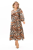 Модель декорирована двумя металлическими молниями: одна служит застежкой на горловине, а вторая формирует стильный разрез на ноге, который можно регулировать по вашему желанию.