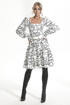 Платье полуприлегающего силуэта, умеренного объема, длиной до колена.