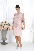 Платье полуприлегающего силуэта, расклешенное книзу. Воротник отложной, на притачной стойке. Платье отрезное по линии талии, на широкой резинке. Платье с центральной застежкой на петли и пуговицы на притачных планках. Полочка с нагрудными вытачками. В боковых швах юбки функциональные карманы. Рукав втачной короткий, с открытым плечом и декоративной патой на пуговице, понизу - притачная манжета.