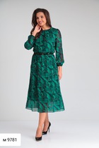 Классическое женское платье отрезное по линии талии. Лиф платья по переду с рельефными швами, на горловине небольшой декоративный разрез. Спинка лифа со средним швом, в котором находится потайная молния. Приталивание спинки лифа достигается при помощи талиевых вытачек. Юбка платья  полусолнце, посредине переда юбки декоративная вставка гофре.  Рукав прямой 3/4, одношовный. Горловина платья обработана обтачкой. Модель подойдет на рост 164-170 см. К платью прилагается съемный пояс. Длина изделия по спинке 115 см