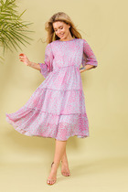 Лаконичное женское платье выручит свою обладательницу в любой ситуации. Благодаря своей универсальности платье отлично подойдет для любого мероприятия или повода: на деловой или дружеской встрече, в офисе или кафе. Платье полуприлегающего силуэта, расклешенное книзу. Воротник рубашечного типа на притачной стойке. Платье отрезное по линии талии, со шлевками для пояса. Полочка с центральной застежкой на притачных планках на контрастные кнопки, нагрудными вытачками и накладными карманами со складкой и клапаном. В боковых швах юбки планки с застежкой на контрастные кнопки и разрезы. Рукав втачной длинный, понизу с притачной манжетой с застежкой на кнопку. В комплект входит пояс из стропы.