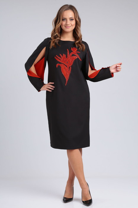 Эффектное нарядное платье классического черного цвета с яркими акцентами подчеркнет Вашу индивидуальность и стиль. Фасон платья подойдет на любой тип фигуры, выгодно скроет недостатки и удачно подчеркнёт достоинства. В таком платье Вы будете неотразимы на любом празднике или торжестве.