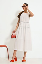 27.03 Vilatte Длинное прямое платье с разрезами из 100% хлопка D42.124 кофе