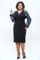 Платье полуприталенное, выполнено из ткани черного цвета с блеском. Характеристики: А-образный силуэт, лиф корсетный, прямой вырез, отрезная, брендированная подкладка, в ценральном шве на спинке потойная молния, по переду и спинке лифа вытачки. Длина изделия по центру спинки 107 см, длина по боковому шву 113см.