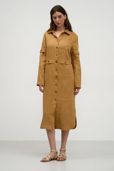 Ценители комфорта и натуральности не оставят без внимания стильное и удобное льняное платье ArtRibbon. Удлиненное платье-трансформер. позволит ощущать себя в эпицентре модных веяний. Невероятно стильное, очень комфортное льняное платье будет уместно в любых повседневных ситуациях. Лен не только красив, но еще очень приятен телу. Платье-рубашка прямого силуэта, с центральной застежкой на кнопки. Воротник рубашечный, рукав втачного покроя. В боковых швах обработаны карманы. Возможно отличие фотографии по оттенку, связанное с разной цветопередачей монитора.