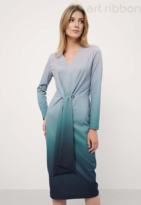 Платье полуприлегающего силуэта с оригинальным поясом, который делает изделие необычным и интересным. Перед и спинка со средним швом. Горловина V-образной формы, рукав длинный, втачной. Изделие без подкладки.. Возможно отличие фотографии по оттенку, связанное с разной цветопередачей монитора.