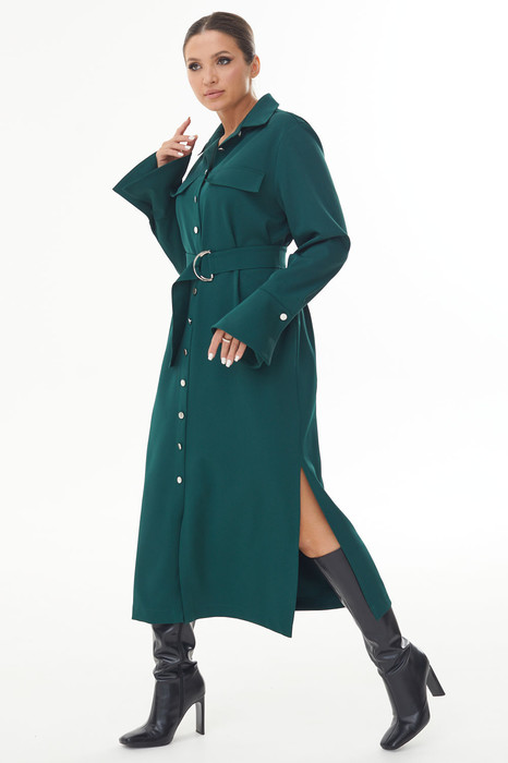 Изумрудное платье-рубашка с накладным поясом с пряжкой.