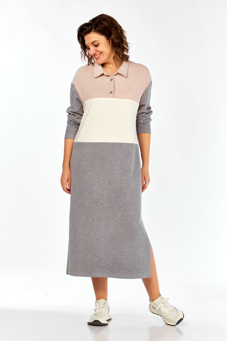 Совместные покупки Уфа Женская одежда Платья — Платье BAGIRA ANTA 1075 серый+пудра+молоко