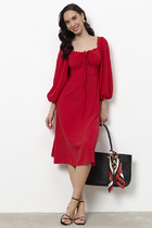 Яркое, элегантное платье, слегка приталенного кроя, подчеркивает Вашу женственность, при этом остаётся комфортным! Горловина обработана воротником и имеет вырез в виде капли с застёжкой на пуговицу, который визуально удлиняет шею и рисует красивое декольте. Передняя часть с нагрудными вытачками. Рукав втачной, полной длины, с изящой расклешенной манжетой, низ которой обработан вподгибку. Низ изделия обработан на плоскошовной машине.