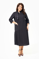 Платье женское полуприлегающего силуэта, выполнено из трикотажной ткани, с подрезом под линией груди и сборкой, с воротником, переходящим в капюшон на спинке в контрастном цвете, рукав втачной 3/4, украшение в комплекте. Длина платья по спинке 104 см.