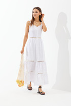 Платье женское,нарядное,свободного силуэта, А-образной формы. Выполнено из двух разных тканей с центральным швом по переду, рукав втачной 3/4 с манжетом- завязкой. Платье на подкладке.