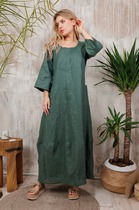 Чиаро – платье А-силуэта из плательной ткани “барби”. Вырез горловины классический овальный, декорирован украшением и вырезом “замочная скважина” – этот элемент придаст вашему образу нарядность и привлекательность. Рукава 3/4, втачные, оторочены фигурными манжетами с нахлестом.