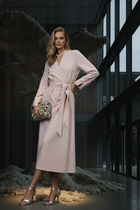 Платье «А» образного силуэта с рельефными швами по переду и спинке. Горловина круглая с цельновыкроенной стойкой. Застежка на тесьму молния в центральном шве спинки. Рукава втачные, со сборкой по низу, на узком манжете с застежкой на петлю и пуговицу.