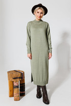 Платье «А» образного силуэта с рельефными швами по переду и спинке. Горловина круглая с цельновыкроенной стойкой. Застежка на тесьму молния в центральном шве спинки. Рукава втачные, со сборкой по низу, на узком манжете с застежкой на петлю и пуговицу.